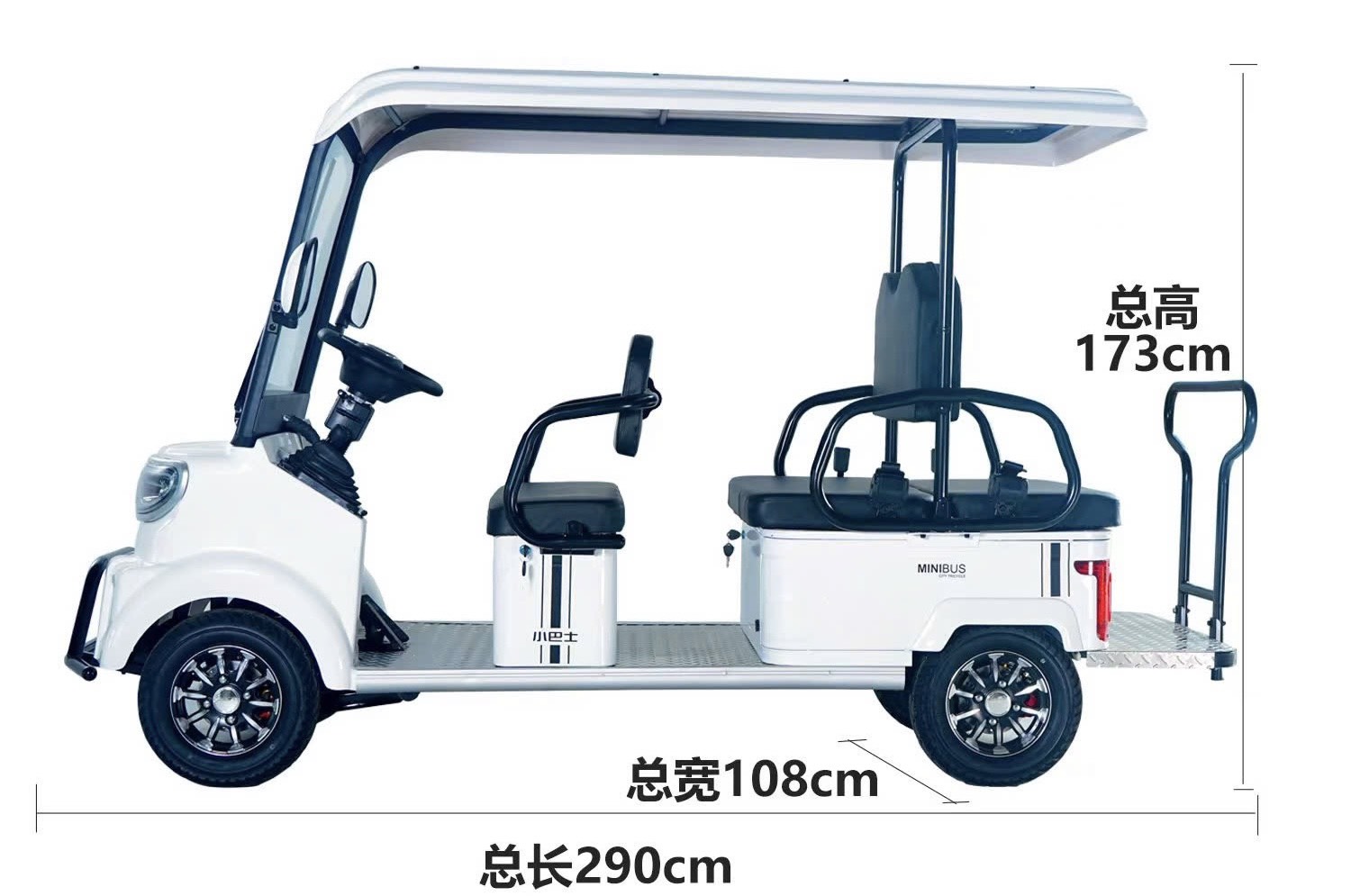 Với kích thước rộng rãi 295x95x180cm, Minibus điện Fukuo M8 có sức chứa lớn và thoải mái. Lốp 17 inch và hệ thống giảm xóc 4 bánh đảm bảo cảm giác lái mềm mại và ổn định, giúp bạn luôn cảm thấy thoải mái khi trên đường.