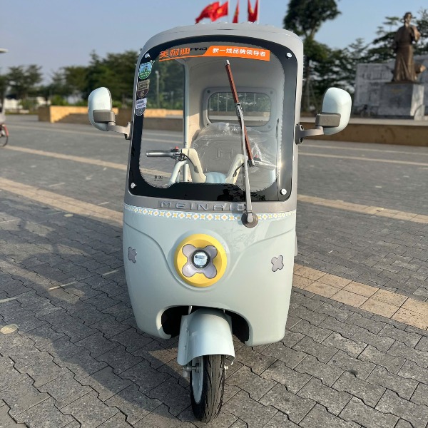 Một trong những đặc trưng đáng chú ý của mẫu xe này chính là mái che tích hợp cùng kính chắn gió, tạo cảm giác liền mạch và hiện đại. Kính chắn gió được làm từ kính cường lực cao cấp, đảm bảo độ bền bỉ vượt trội. Thêm vào đó, XE ĐIỆN BA BÁNH MEINAIDO J35 còn được trang bị cần gạt điện, mang lại sự tiện nghi cho người lái trong mọi điều kiện thời tiết.
