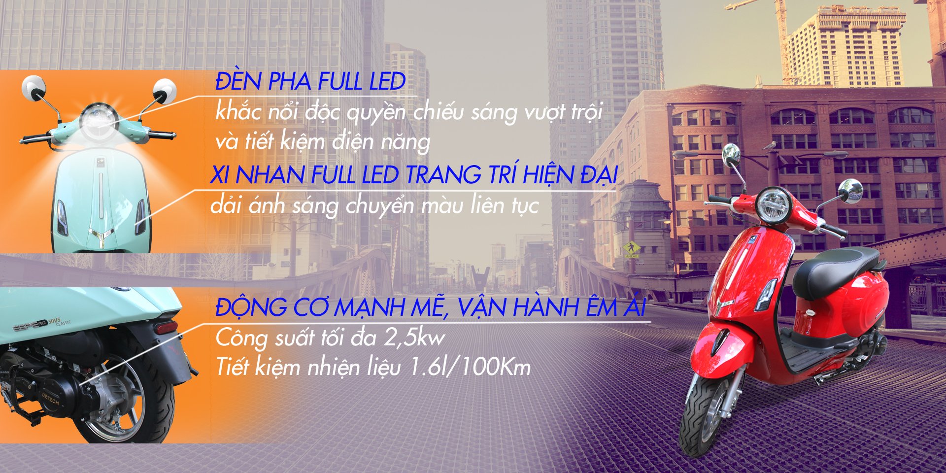 - Động cơ xăng 4 kỳ, với dung tích xi lanh 50cc xe không cần bằng lái.